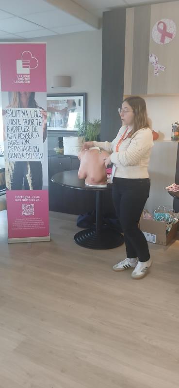Les résidentes, le personnel, les familles et habitants de Creney-Près-Troyes ont répondu présent pour cet après-midi de sensibilisation. Alice, conférencière, a présenté un buste avec différentes formes d'anomalies qu'on peut détecter sur une poitrine.