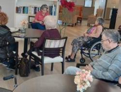 Après quelques mots de présentation, Angélique , l'animatrice a prêté sa voix pour une lecture ou résidents et familles sont venus applaudir l'expérience et la vie de se professionnel.